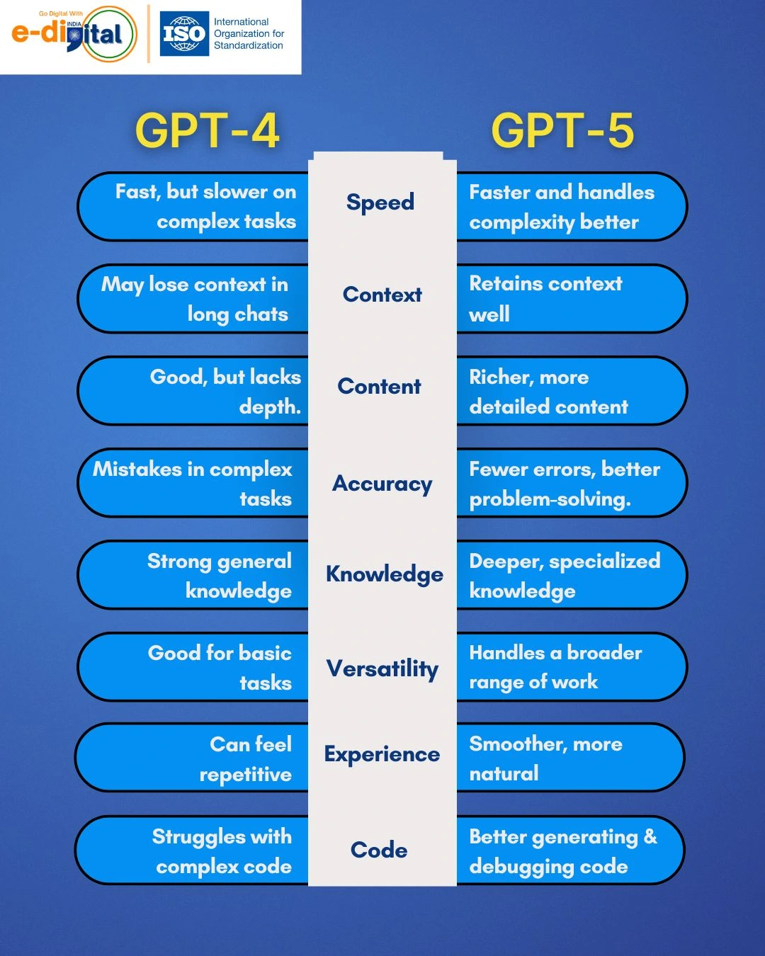 GPT-5 is quicker, wiser, and more contextually aware than GPT-4, with improved content creation, more precise answers, and stronger reasoning for AI training, web development, and digital marketing.